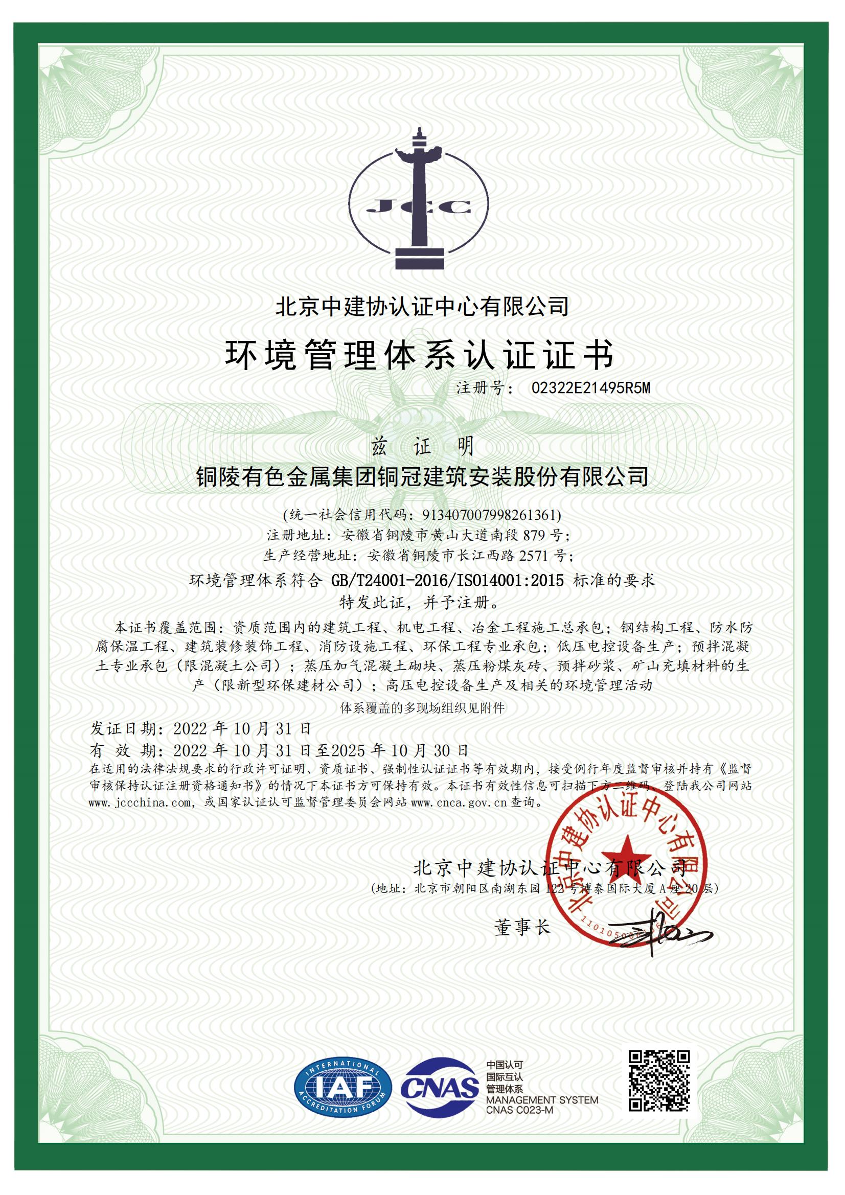 • 環(huán)境管理體系認(rèn)證證書