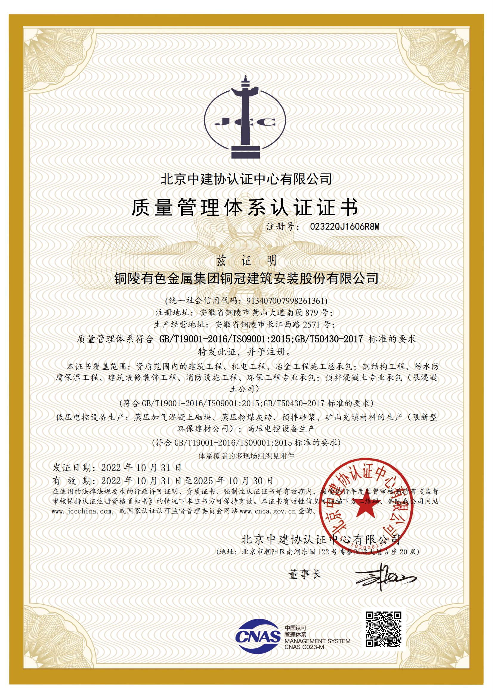 • 質(zhì)量管理體系認(rèn)證證書